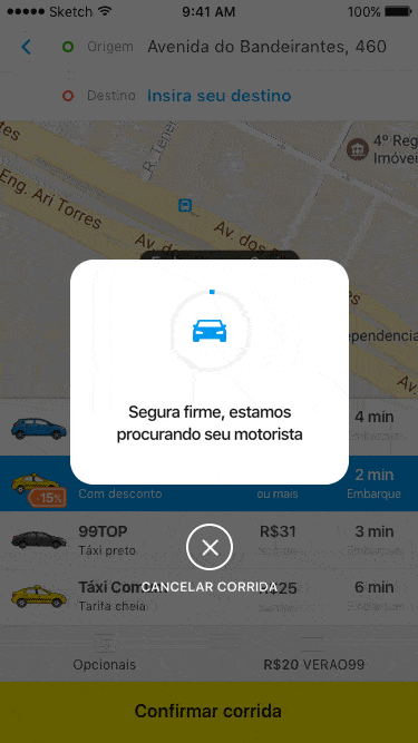 99 didn't want to punish the passengers, so at that time, a cancellation fee was not an option. With that in mind, I started to investigate how the users perceived these fundamental flows to find their weaknesses and propose improvements to decrease the cancelation rates.